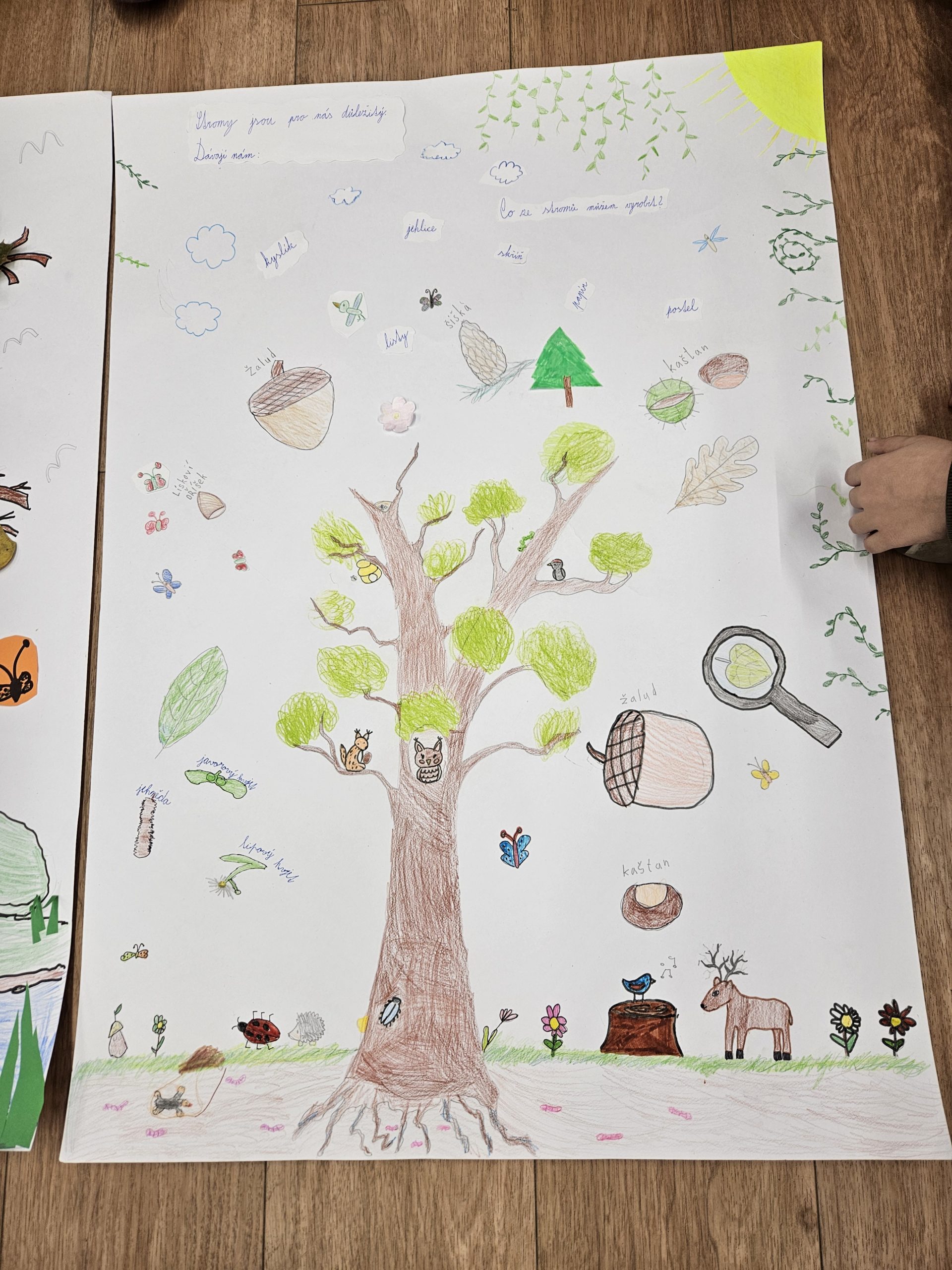 Žáci ve skupinách tvořili plakát na toto téma, který obsahoval kresbu stromů, informace o významu stromů.